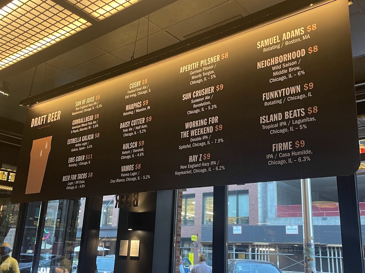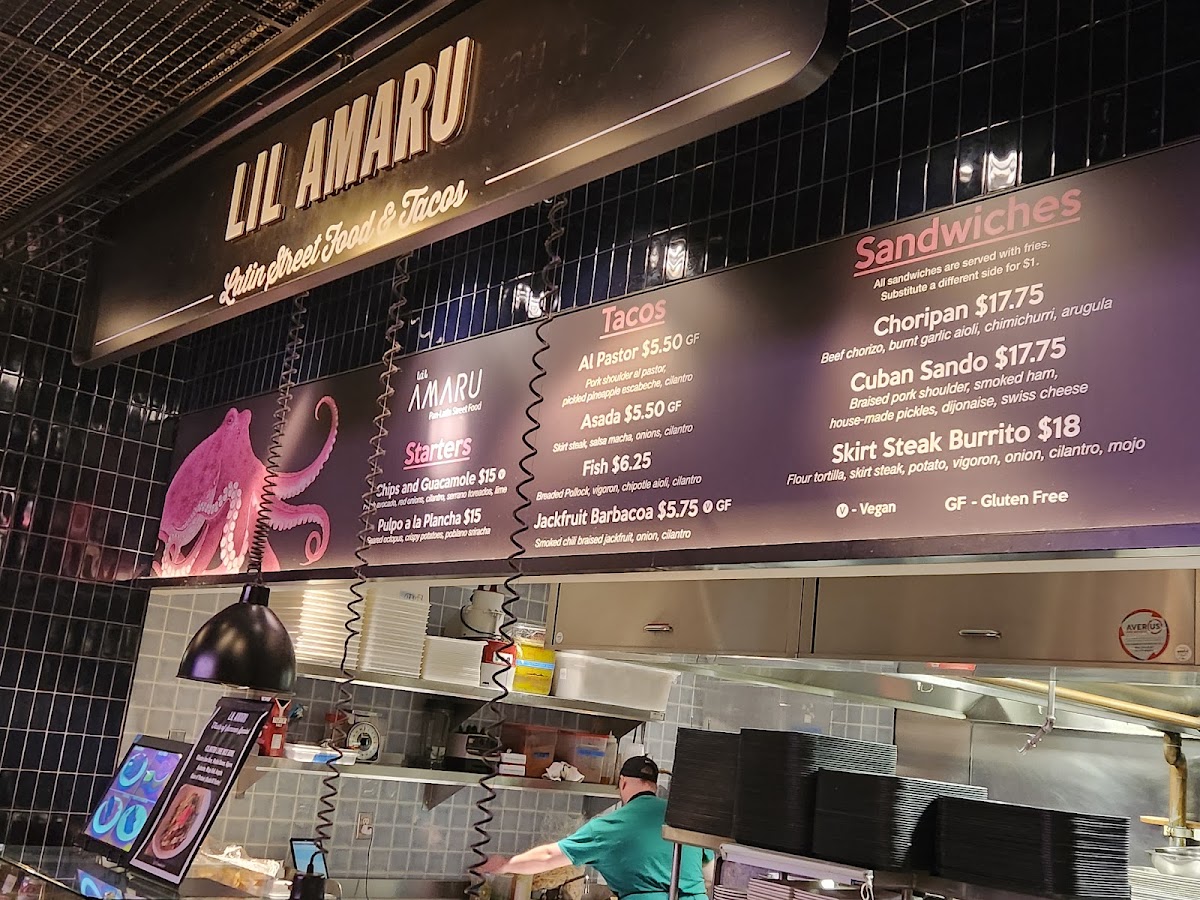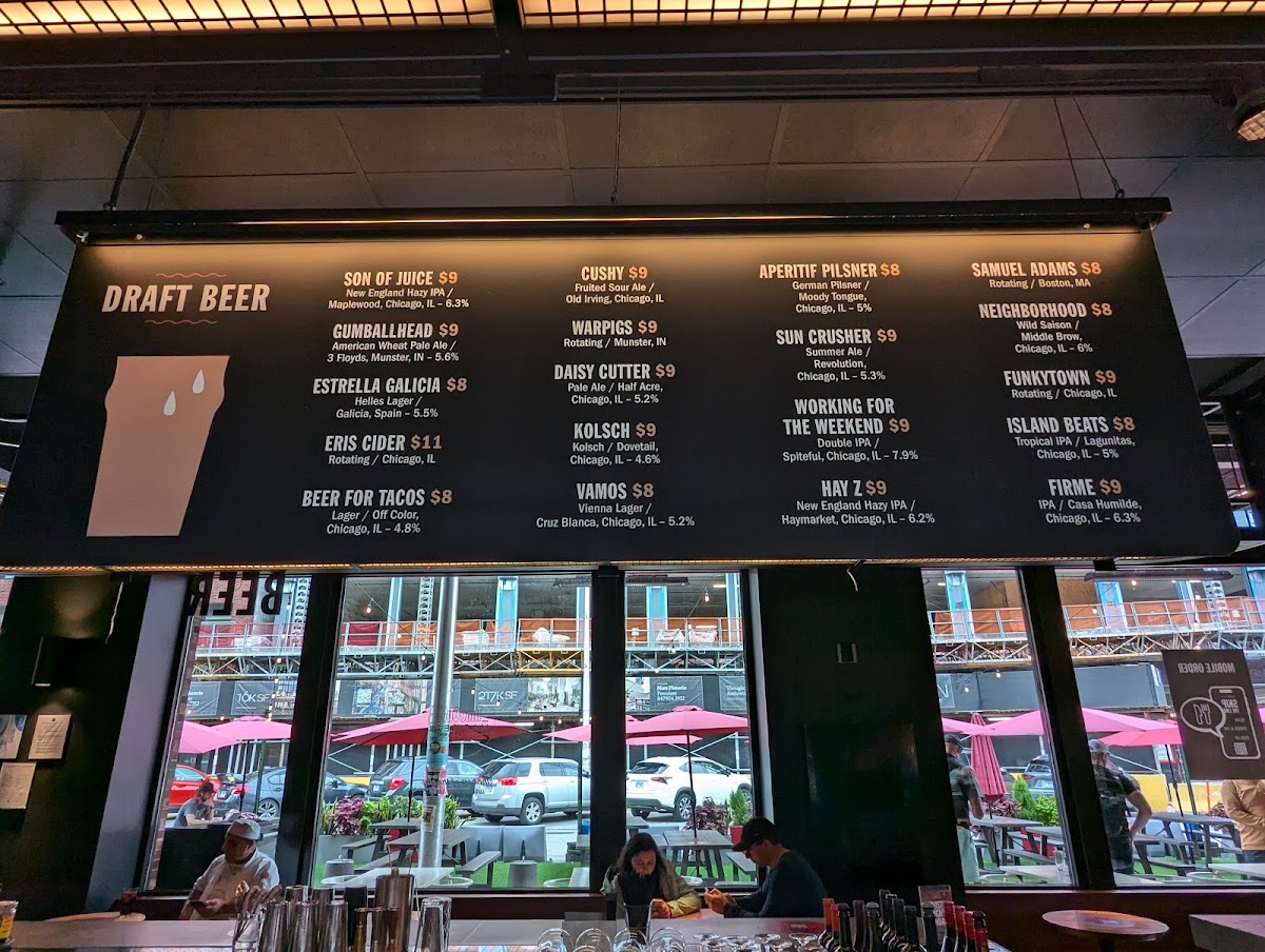 The atmosphere here is electric, filled with laughter and the buzz of excitement as friends and families gather at shared tables, making it the perfect spot for both socializing and dining. The wide-open seating layout encourages mingling, while the stunning rooftop offers breathtaking views of the Chicago skyline, providing a picturesque backdrop to your meal.